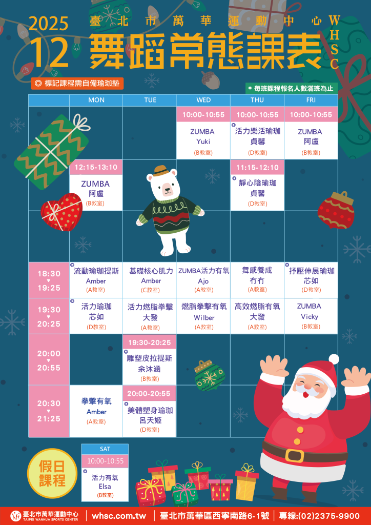 (02)2375-9900 分機 623 舞蹈部 (課程內容問題) 或 分機 601 客服部 (卡類或報名問題)