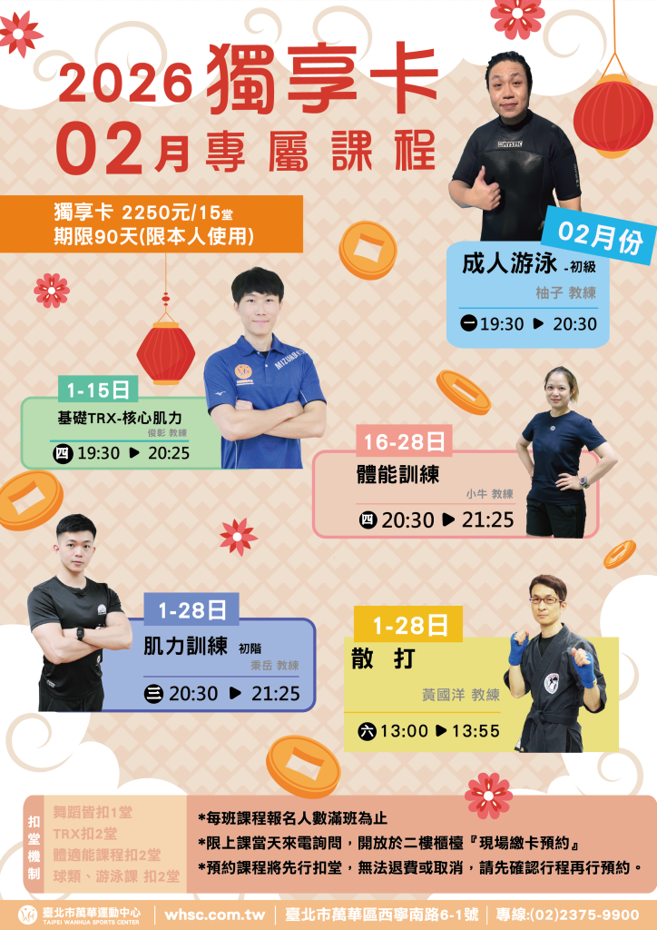 > 課程內容問題 : 舞蹈部 分機 623、場館部 分機 623 (球類課程)、體適能 分機 626、客服部 分機 601 (游泳課程)