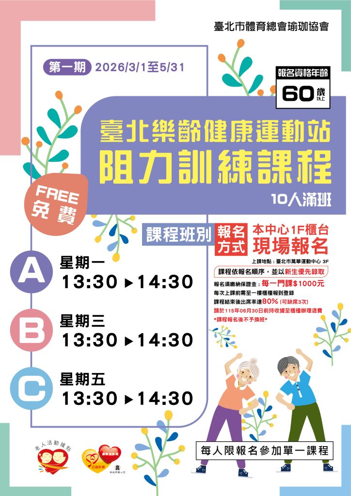 【新課程】臺北樂齡健康運動站 阻力訓練課程 開課囉~